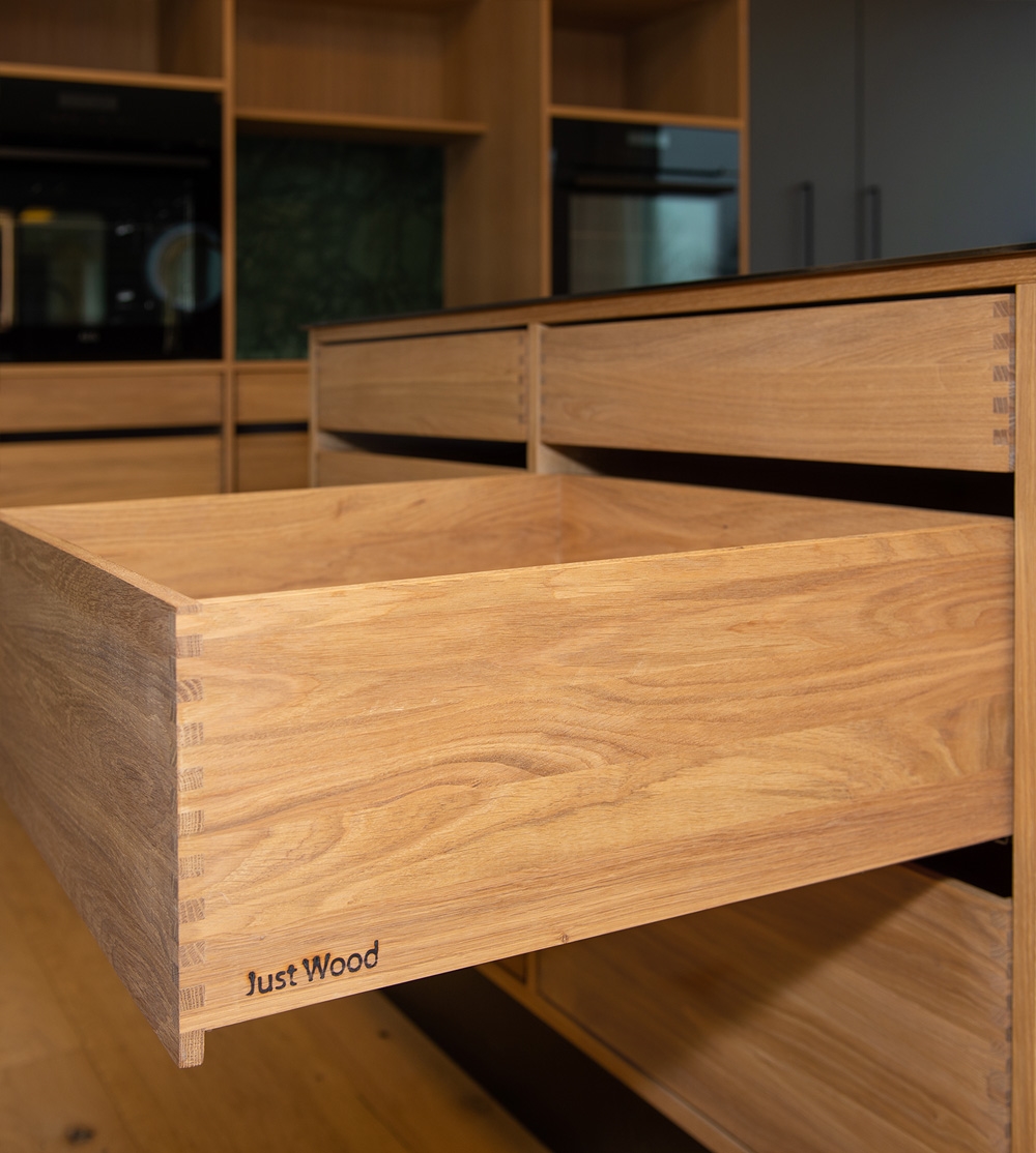 Et af kendetegnene ved vores skuffer er vores massive, olierede fingertappede samlinger der er samlet med håndkraft. De giver et flot og æstetisk udtryk, som du stolt kan vise frem derhjemme.