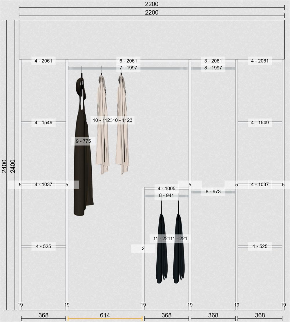 Celebert Inventar fra bredde 220 til 240 cm passer til 2 skydedøre