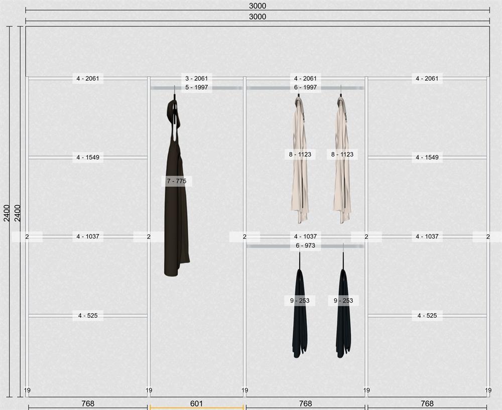 Celebert Inventar fra bredde 300 til 320 cm passer til 4 skydedøre