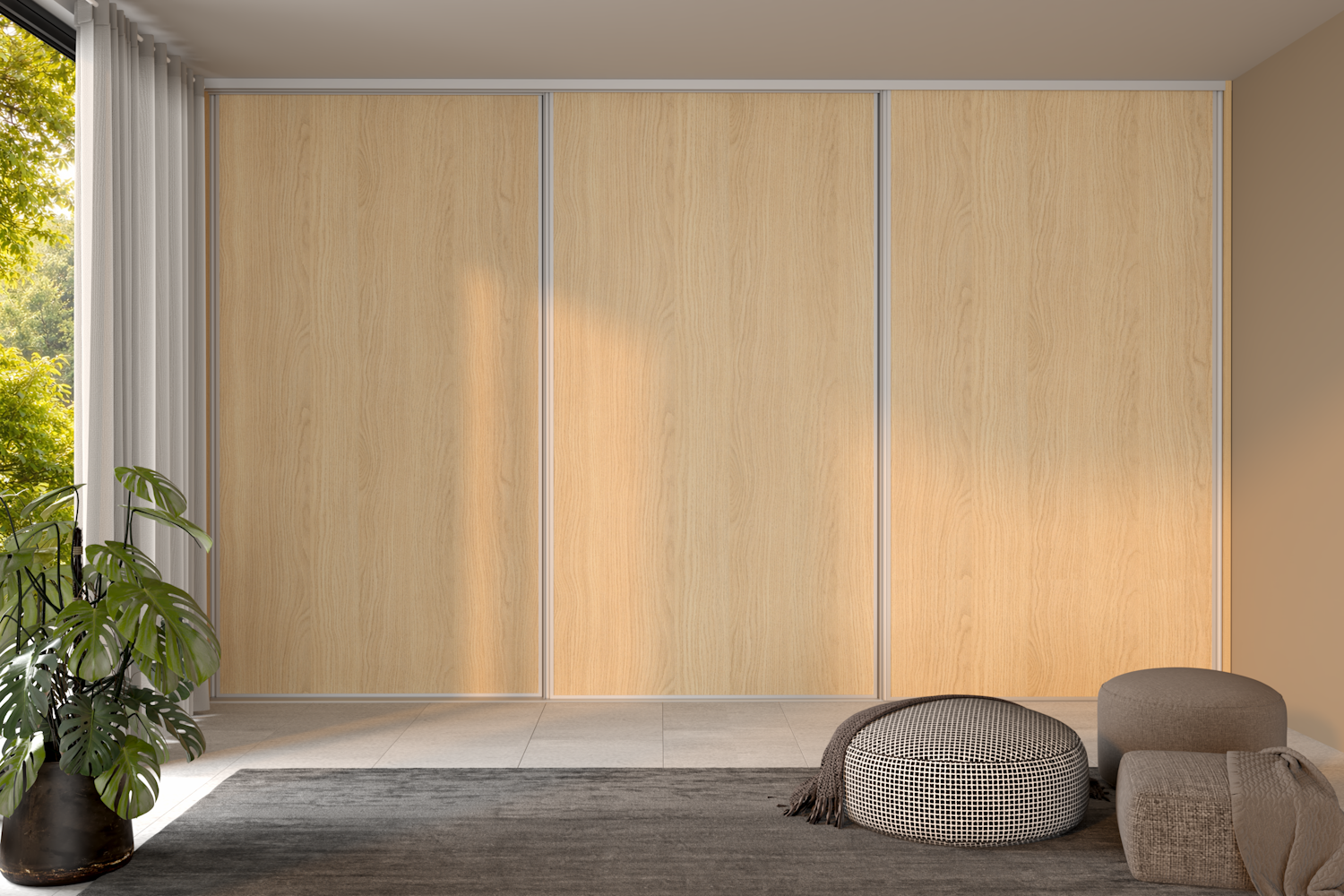 Den tredelte skydedør optimerer garderobepladsen og sikrer maksimal fleksibilitet, samtidig med at den er nem at betjene takket være den robuste konstruktion og det støjsvage hjulsystem. Modul One 3 låger er ideel til mellemstore garderober, hvor du ønsker en brugervenlig og elegant løsning uden unødvendige detaljer.