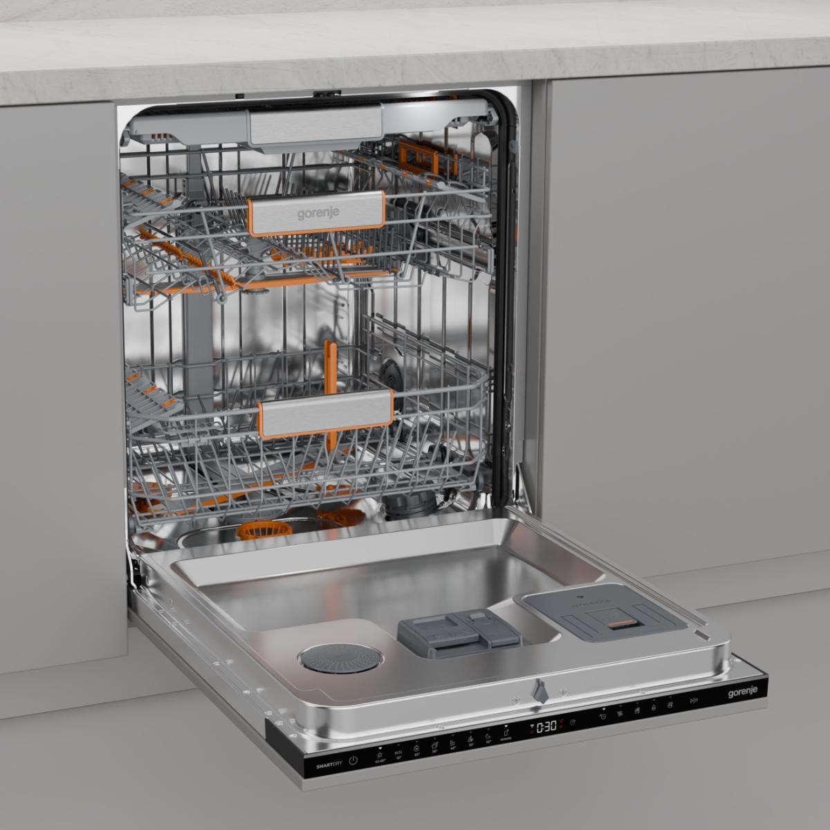 Nye Gorenje-modeller har to kraftige, højeffektive dyser bagerst i karret, som med direkte vandtryk eller bred spray rammer selv det mest faste snavs. Ideelt til gryder, pander, bageplader – og flasker. Dyserne kan også slukkes individuelt efter behov.