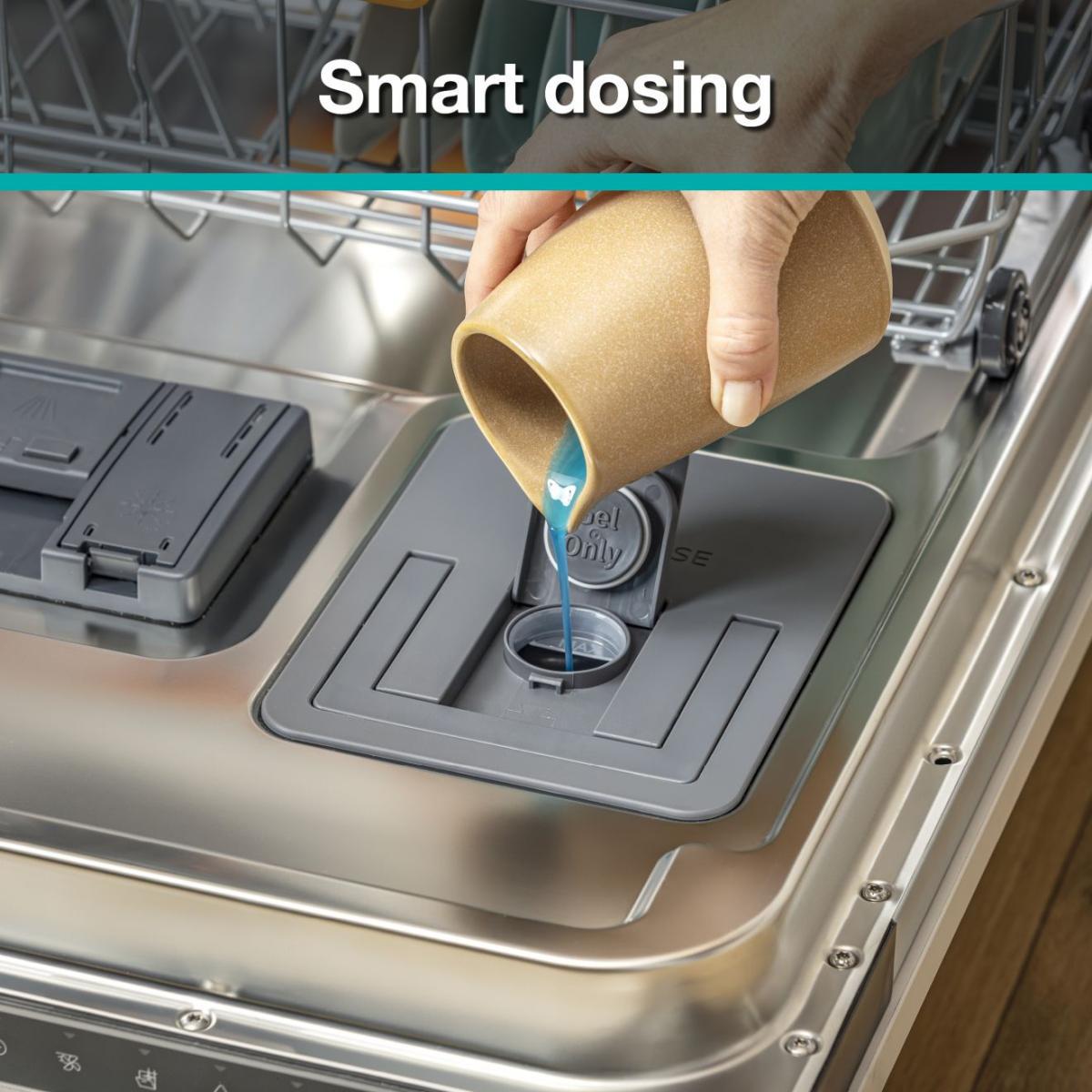Den unikke SmartDosing-løsning sparer både tid, energi og opvaskemiddel. Fyld blot beholderen op – så behøver du ikke dosere igen i op til en måned (ca. 20 vaske). Maskinen doserer automatisk den rette mængde baseret på det valgte program. Beholderen er aftagelig og let at rengøre.