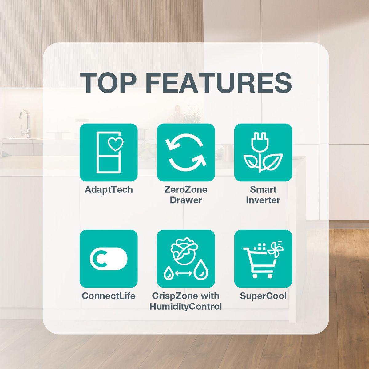 Dette smarte system er udviklet til at opretholde en konstant temperatur i køleskabet, uanset hvor ofte du åbner døren. Køleskabet overvåger løbende den måde, du bruger det på, og styrer temperaturen for at forhindre enhver temperaturstigning, hvilket sikrer, at dine madvarer forbliver friske og sænker energiforbruget.