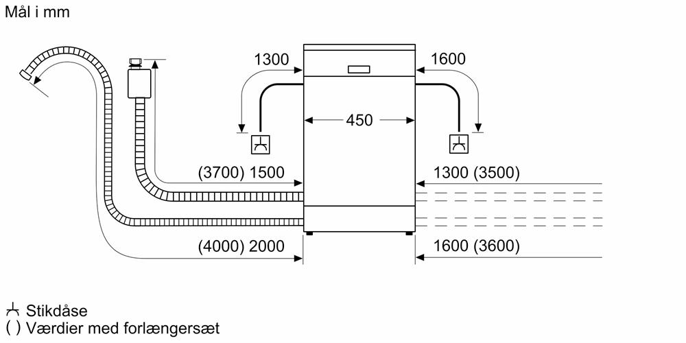 Dybde med åben dør 90 grader 1150 mm