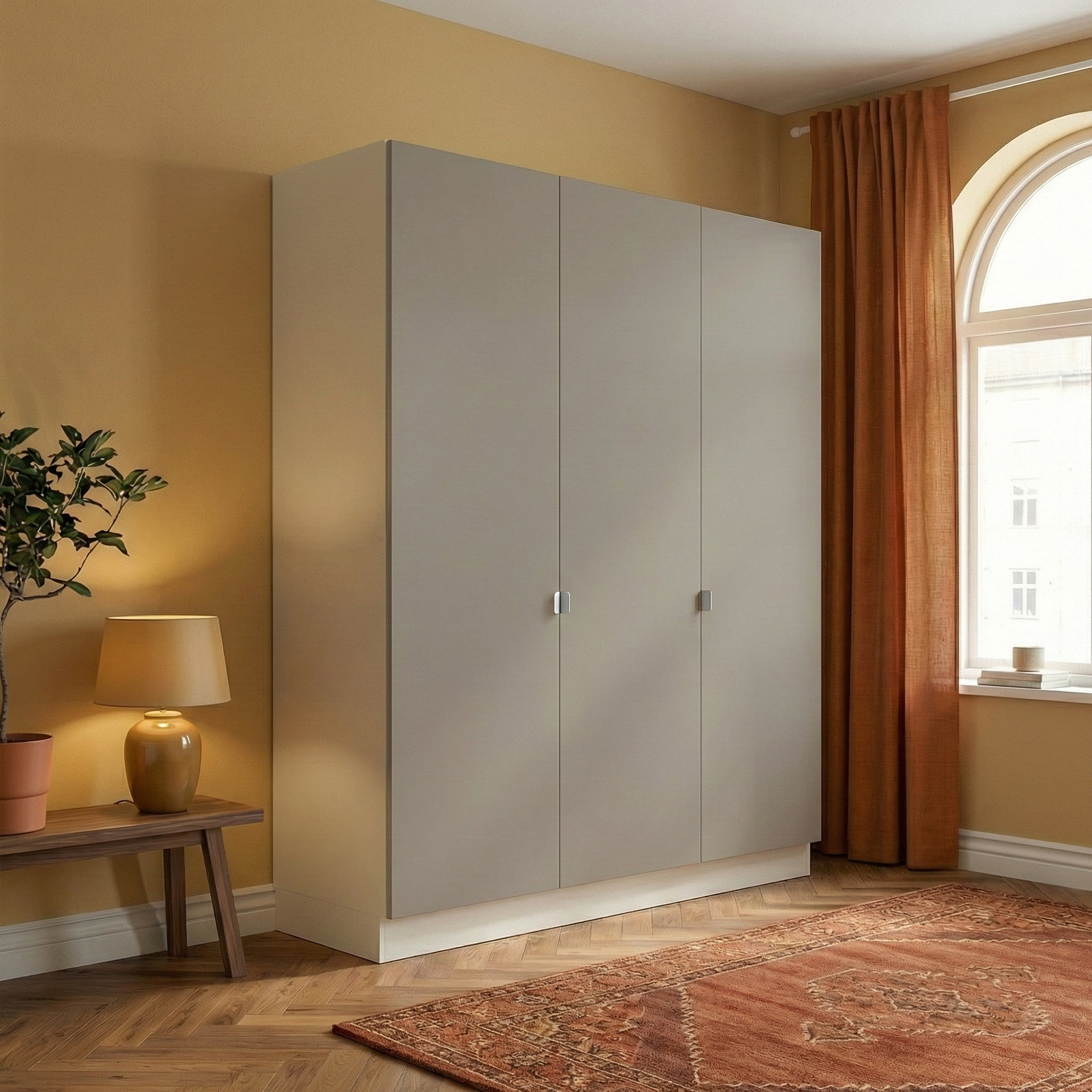 Garderobeskab med 3 låger i gra 180 cm fra Kitchn med Plano Varm Grå front