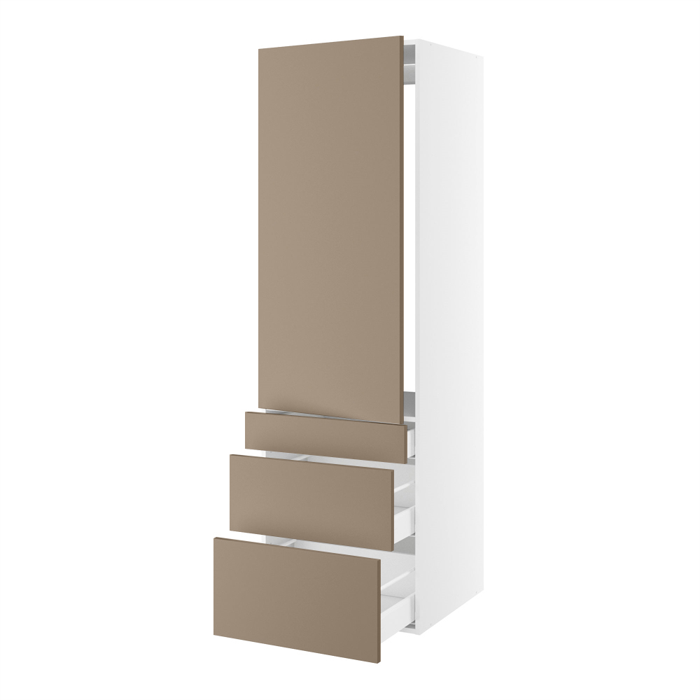 Højskab, t/integreret køl med glideskinner, 1244mm låge, m/hængselsboring, 3 skuffer H:124/252/316mm, hul: 1224mm. H:1952 B:600 D:580