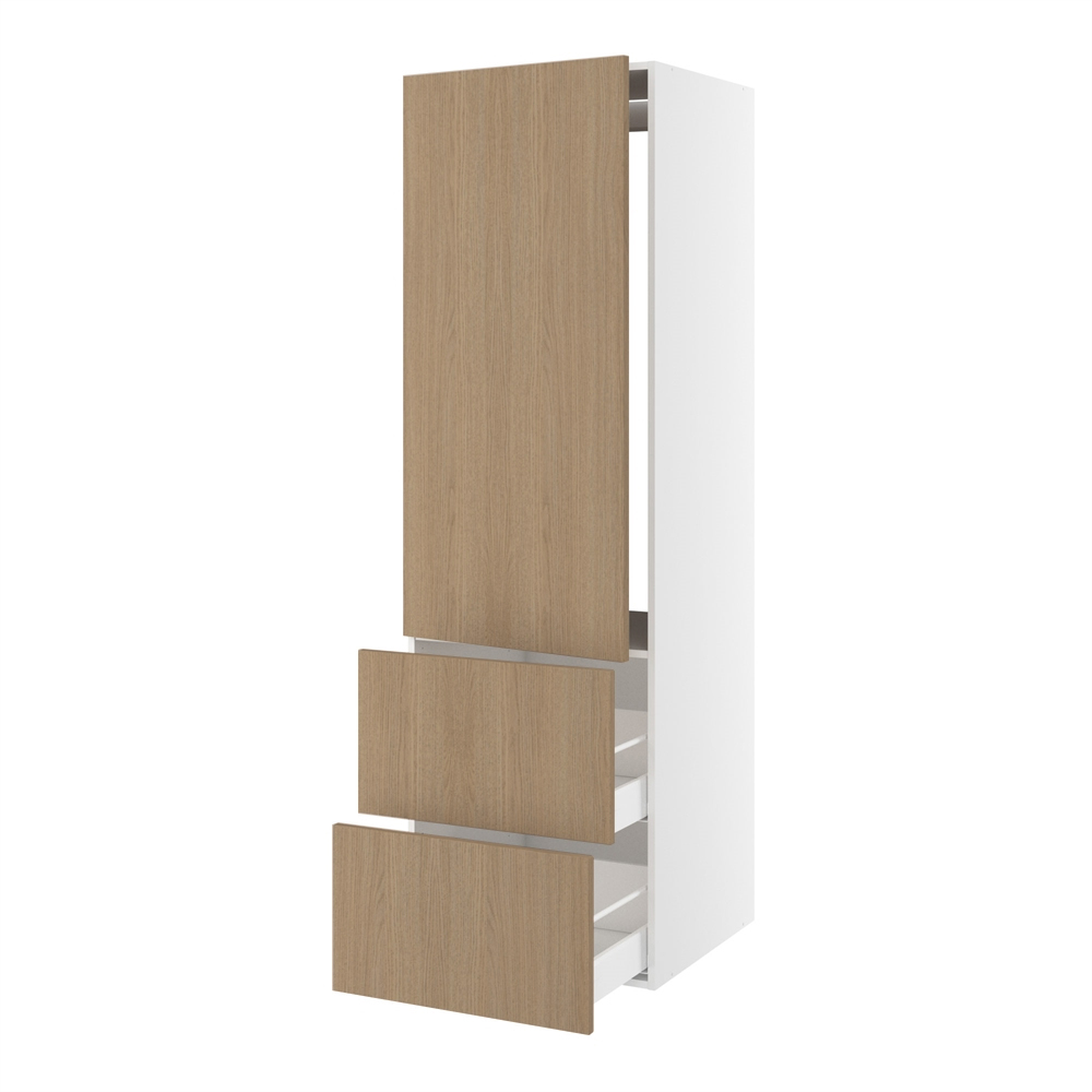 Højskab, t/integreret køl med glideskinner, 1244mm låge, m/hængselsboring, 2 skuffer H:348mm, hul: 1224mm. H:1952 B:600 D:580