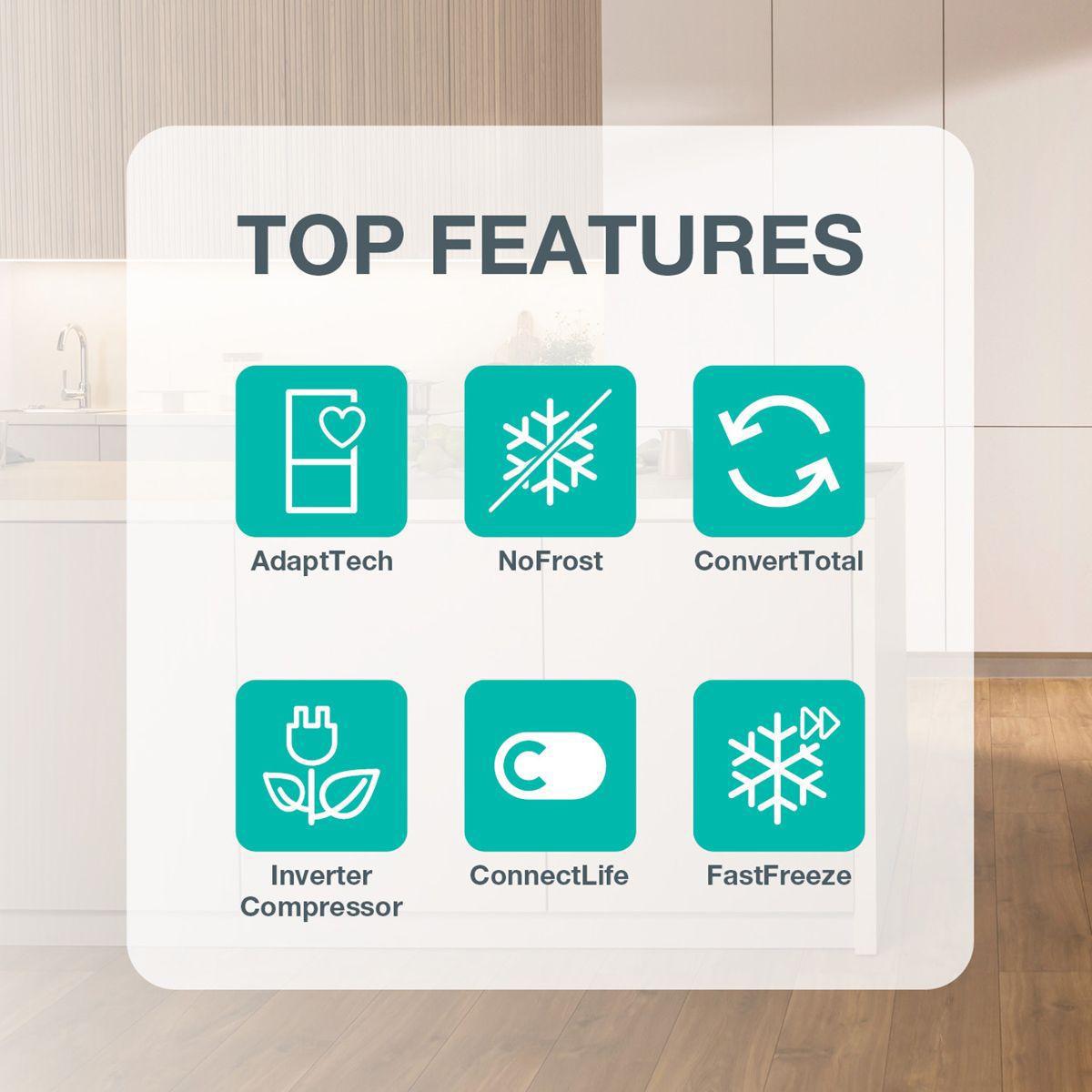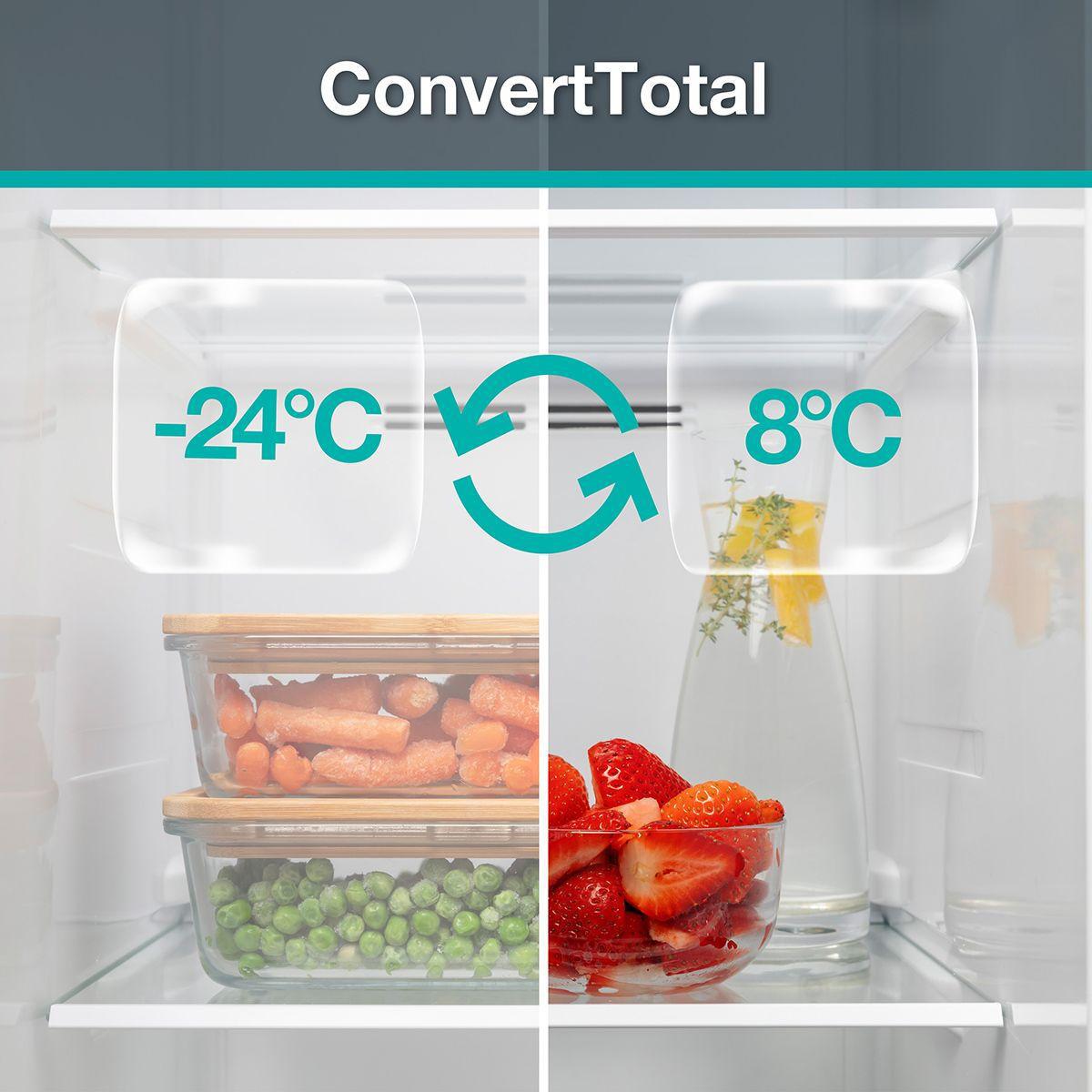 Frisk eller frossen? Vores innovative ConvertTotal-funktion giver dig mulighed for at justere temperaturen fra -24 °C til +8 °C, så du nemt kan forvandle dit køleskab fra en fryser til en køler. Oplev friheden til at imødekomme alle dine opbevaringsbehov med lethed. Nyd den ultimative temperaturfleksibilitet med ConvertTotal, som giver dig den ultimative temperaturfleksibilitet til alle dine opbevaringsbehov.