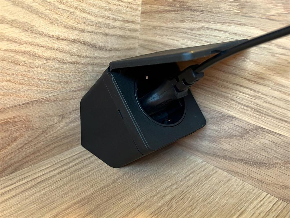 Den mat sorte finish giver et moderne og eksklusivt udtryk og passer til både lys-, natur- og mørkolierede møbler. Selve stikket skjules af en fjerbelastet klap, når kontakten ikke bruges. Klappen holder samtidig støv og vand ude og gør enheden sikker i hverdagen.