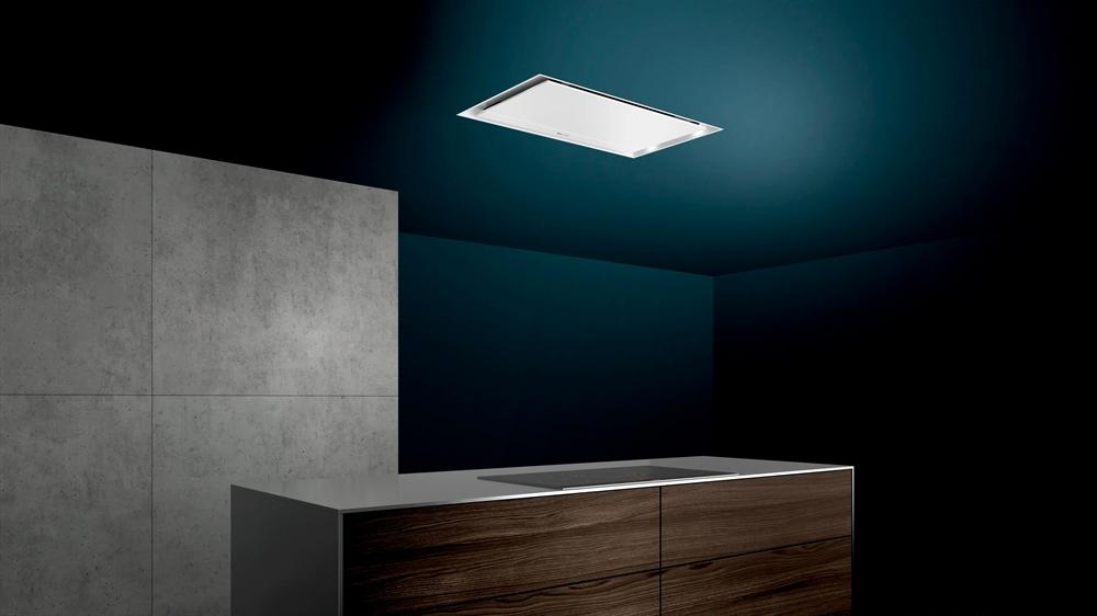 Du kan have en afslappet samtale med dine gæster i køkkenet. Den kraftige motor med en høj udsugningseffekt fjerner stegeos og damp meget stille.