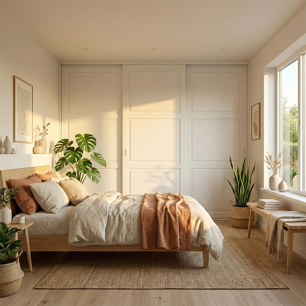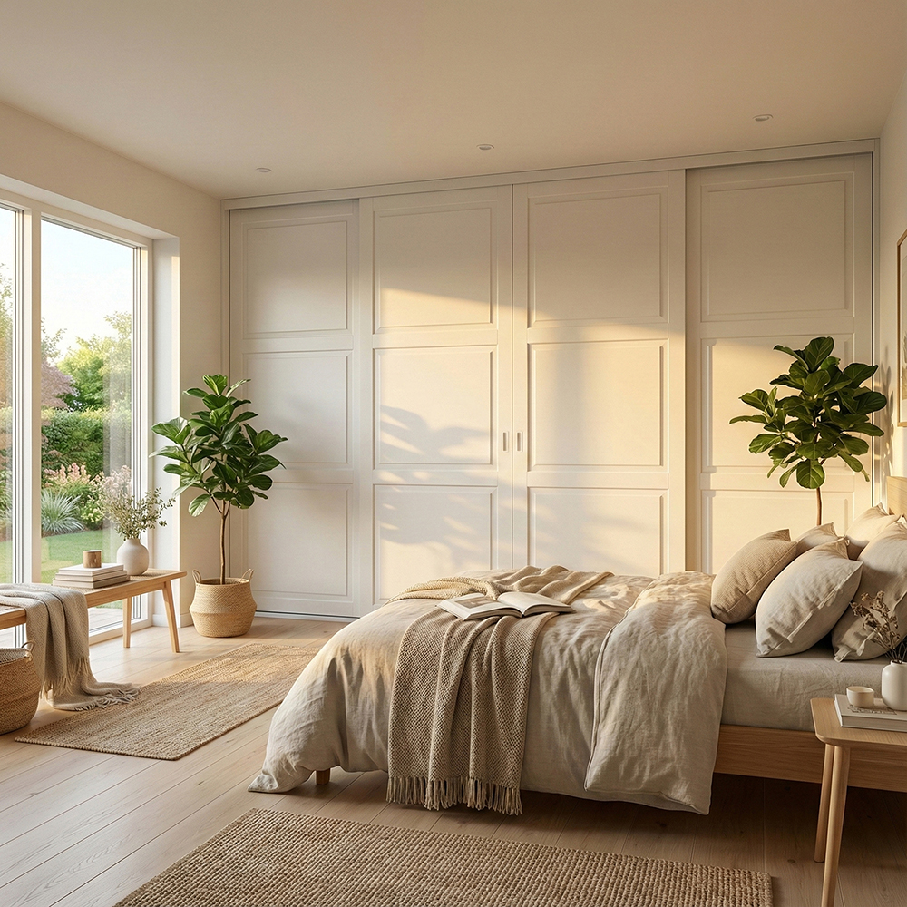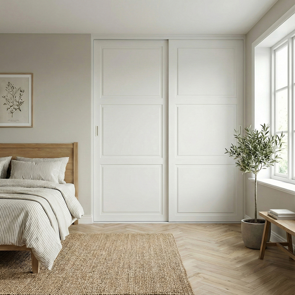 Mogensen Contoura Almue Folie skydelåger på mål til garderobe med 4 låger og softclose - Total bredde 256 til 307 cm.