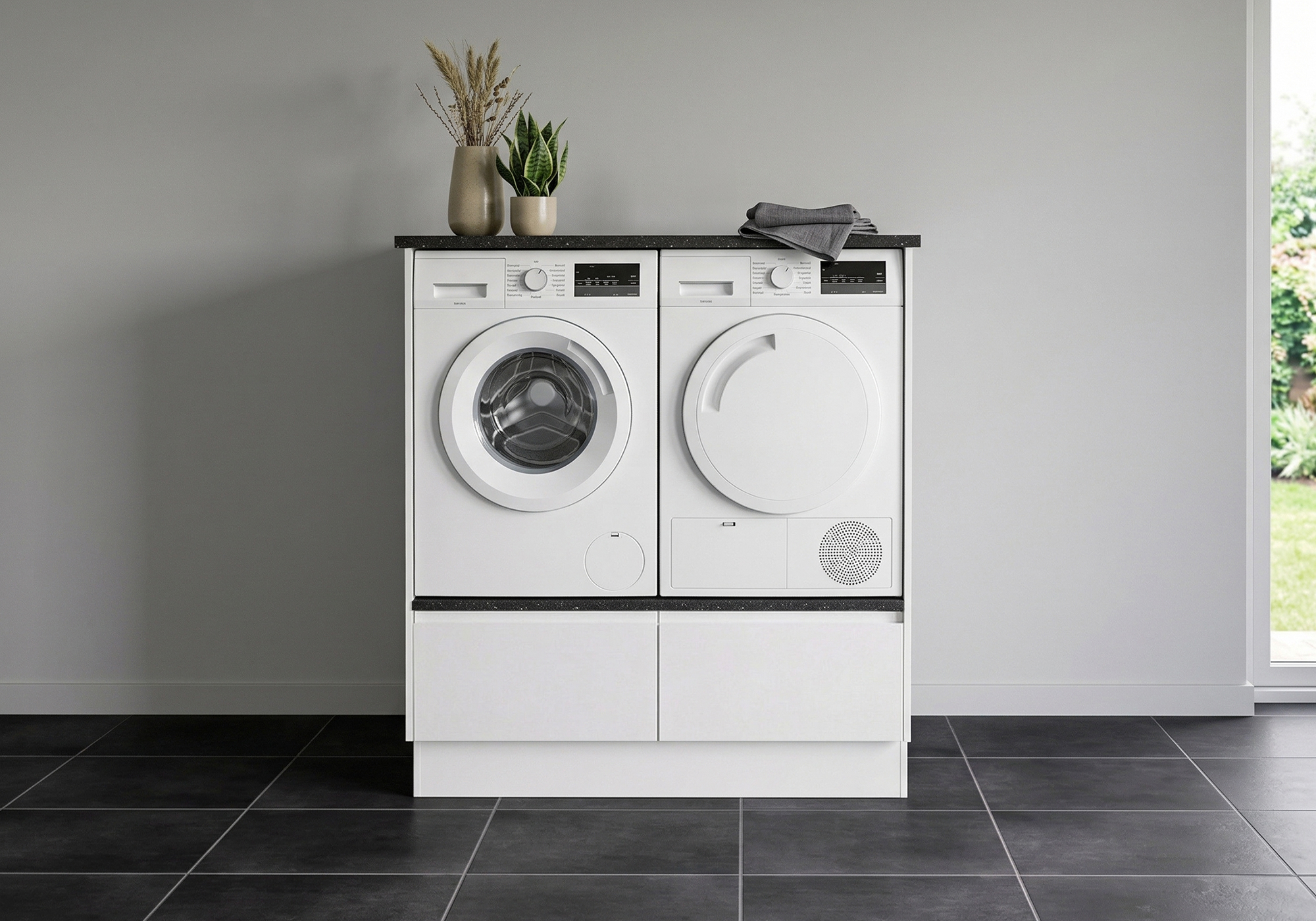 Multi-Living Bryggers sæt med Hvid Grebsfri | Underskab m. skuffe, Vaskeskab, Gavle, Sokkelsæt - Bryggers sæt 1