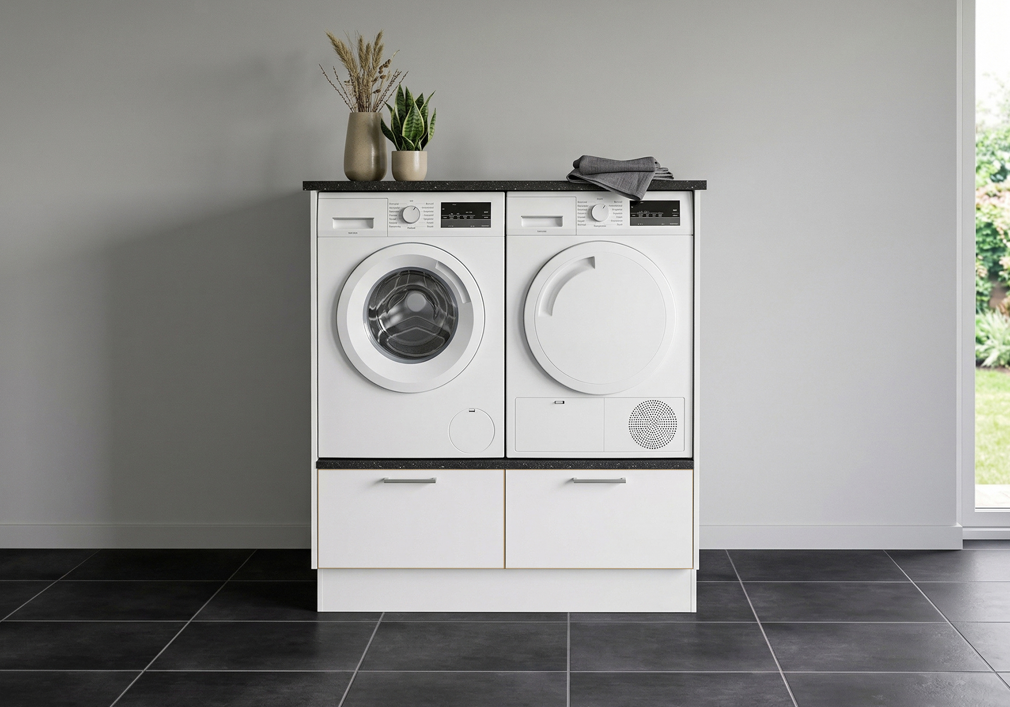 Multi-Living Bryggers sæt med White/Oak Line | Underskab m. skuffe, Vaskeskab, Gavle, Sokkelsæt - Bryggers sæt 1