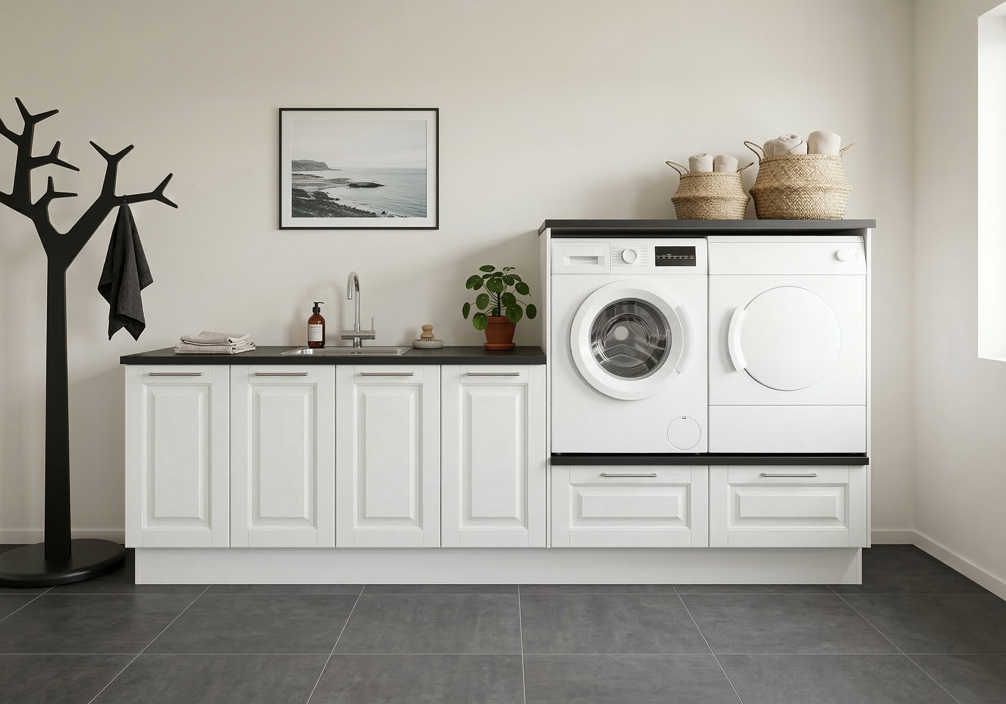 Multi-Living Bryggers sæt med Romantik | Underskab m. skuffe, Vaskeskab, Gavle, Sokkelsæt - Bryggers sæt 1