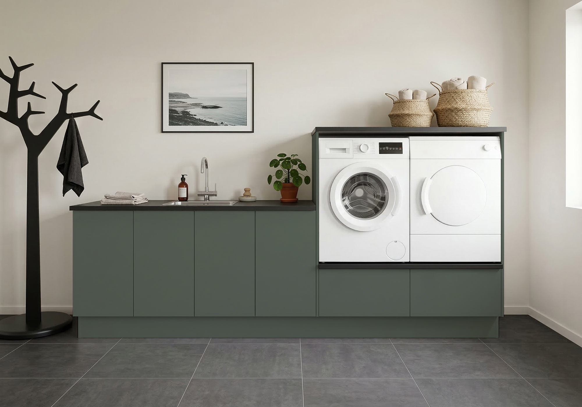 Multi-Living Bryggers sæt med Cibo Verde | Underskab m. skuffe, Vaskeskab, Gavle, Sokkelsæt - Bryggers sæt 1