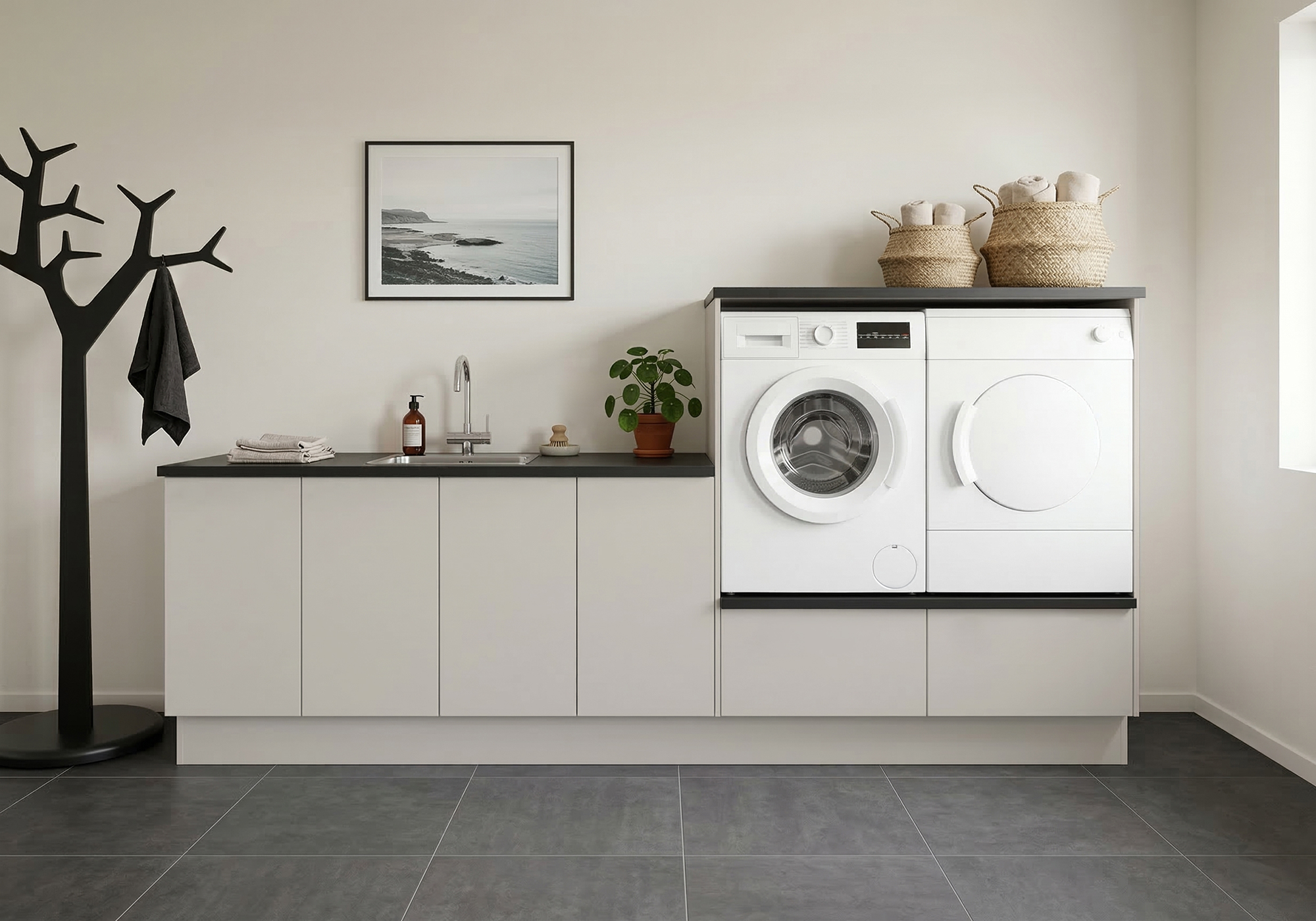 Multi-Living Bryggers sæt med Cibo Sabbia | Underskab m. skuffe, Vaskeskab, Gavle, Sokkelsæt - Bryggers sæt 1