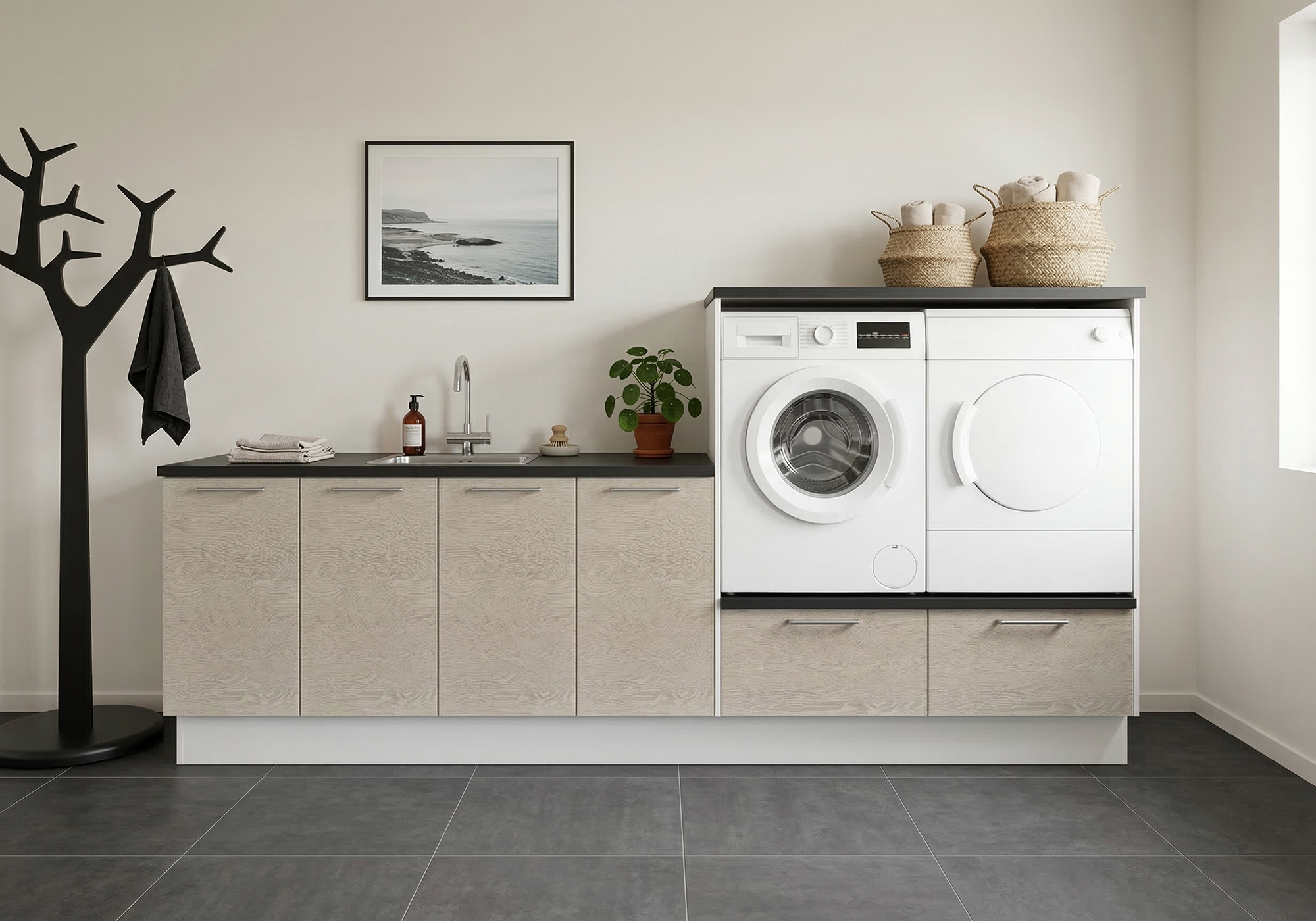 Multi-Living Bryggers sæt med Wien | Underskab m. skuffe, Vaskeskab, Gavle, Sokkelsæt - Bryggers sæt 1